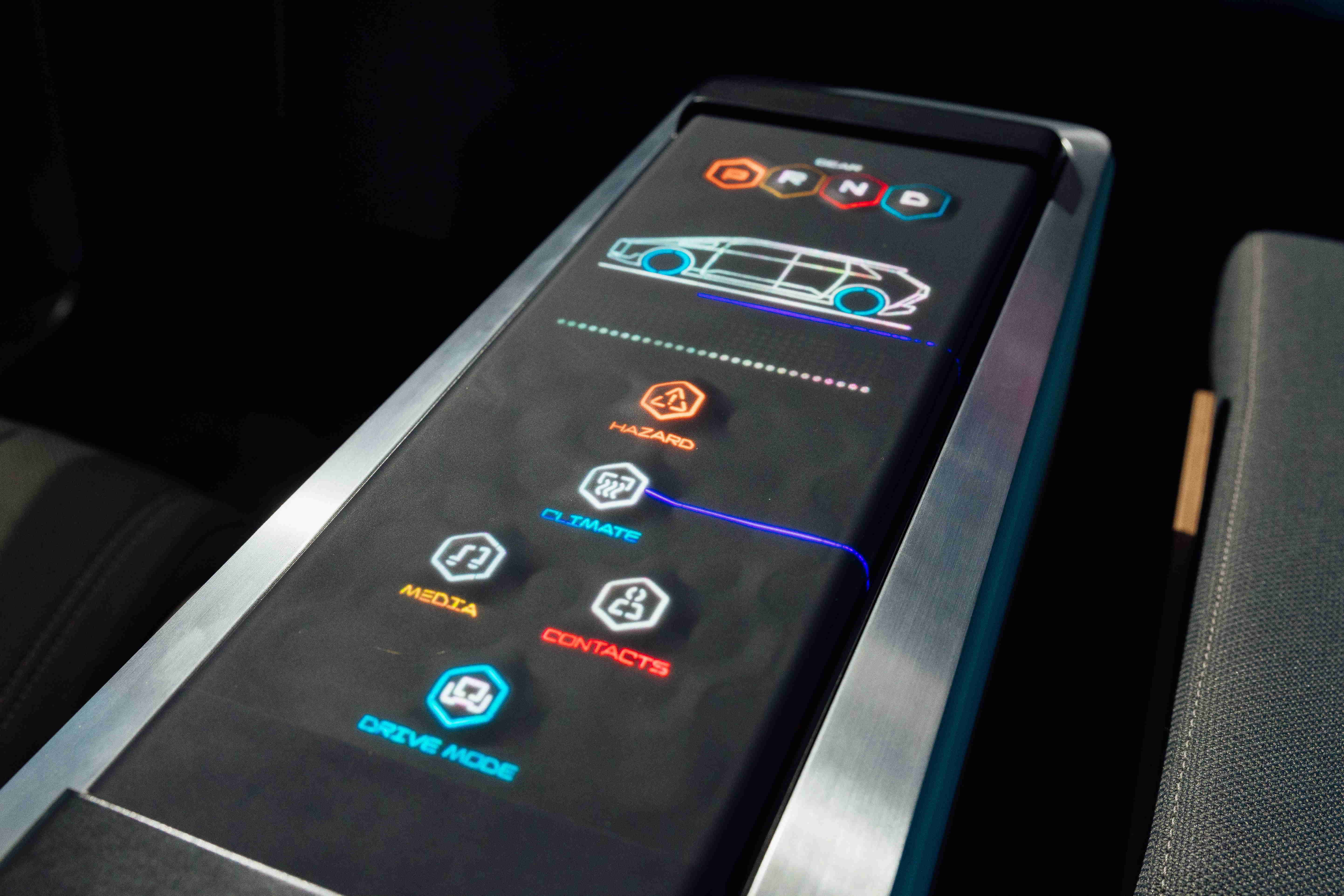 Morphing Center Control has a dynamically adjutable surface. When not in use, the Morphing Control Center displays information on the surface of the central console. When specific functions are activated, the buttons rise and provide tactile feedback, demonstrating a new way for human-machine interaction. ? ? ![]()