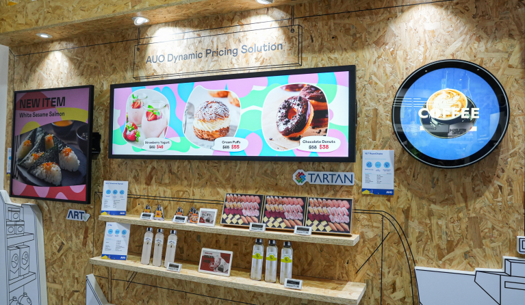 To assist retail clients to overcome persistent labor shortage, AUO has integrated its software and hardware services to launch the AUO Retail Cloud Platform. Through this highly integrated platform, retailers can effectively monitor and manage all in-store digital signage and electronic shelf labels via a single system. It is suitable for convenience stores and supermarkets, branded chain stores, large exhibition halls, banks, and other verticals. AUO’s digital signage, boasting high-resolution image quality and superior brightness, combined with electronic shelf labels, elevates retail space while helping retailers fulfill their sustainability and carbon reduction commitments by reducing labor and material costs associated with replacing print advertisements and minimizing the number of trees cut down.