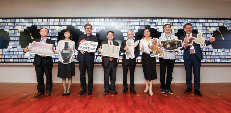 鼎博攜手創利空間為故宮建置的智慧文物互動導覽牆及輪播牆,今日正式啟用? (左四:鼎博新事業暨投資管理總部副總經理楊本豫、右四:國立故宮博物院院長吳密察、右三:太極影音董事長黃寶雲) ? ?